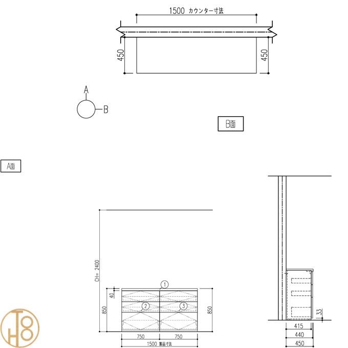商品説明 | リクシル シエラSキッチン収納 LIXIL システム収納フロアキャビネット スライドストッカー3段引出し カウンタープラン 間口150cm 奥行45cm 高さ85cm |