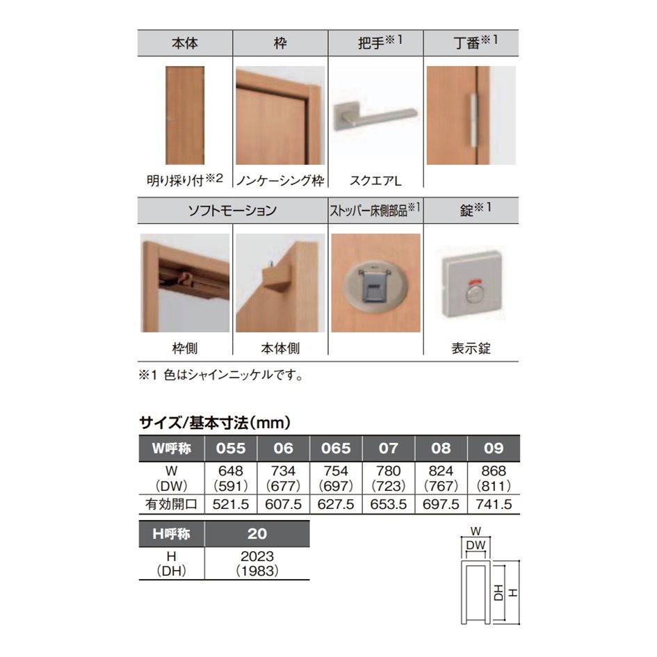 | 商品仕様 | メーカー LIXIL(リクシル) 商品名 ラシッサS 室内ドア トイレタイプ 基本寸法 【必要開口寸】 (05520)w648mm (0620)w734mm (06520)w754mm (0720)w780mm (0820)w824mm (0920)w868mm 高さ(共通)h2023mm ドア寸法 (05520)w591mm (0620)w677mm (06520)w697mm (0720)w723mm (0820)w767mm (0920)w811mm 高さ(共通)h1983mm 有効開口 (05520)w521.5mm (0620)w607.5mm (06520)w627.5mm (0720)w653.5mm (0820)w697.5mm (0920)w741.5mm 選択項目 カラー・枠見込み・吊元・下枠・ハンドル・鍵・その他オプション品 枠仕様 ノンケーシング仕様 7方枠 セット内容 枠 ドア本体 把手 沓摺(ご選択時のみ)その他オプション品(ご選択時のみ) |