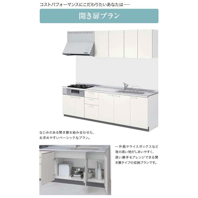 カテゴリー システムキッチン > 壁付I型 > 開き扉プラン-下半部