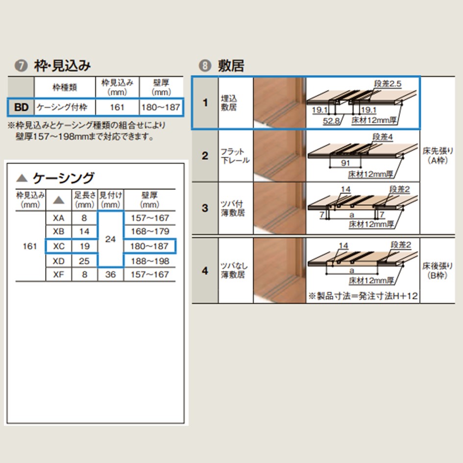 商品仕様 室内引き戸 Vレール方式 2枚建 片引き戸 ラシッサS LAA 【ケーシング仕様】 2420 W2432×H2023mm