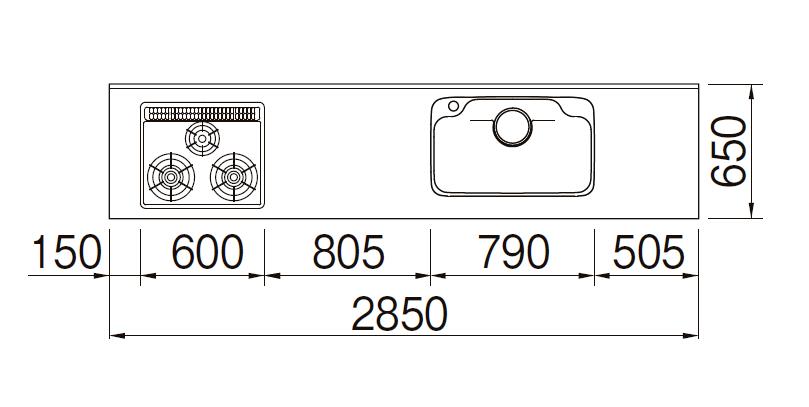 壁付I型 スライドストッカープラン グループ1 間口285cm奥行65cm 高さ・扉色選択可能 3口コンロ・レンジフード オプション選択 ウォールユニット付 上下セット 食器洗い乾燥機無 システムキッチン リクシル シエラS W2850mm流し台 新築 リフォーム キッチン