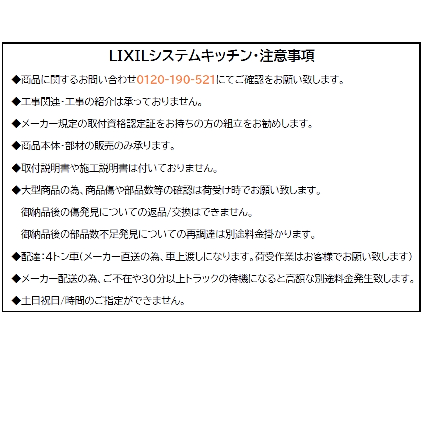 4. 納品日当日、商品の受け渡しはドライバー1名で車上渡しとなりますので、※荷受けは、(大人2名以上) 必ずお願いいたします。