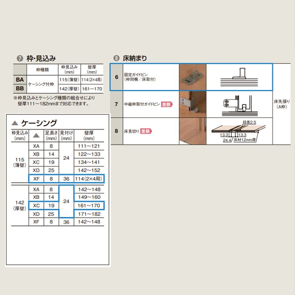 商品仕様 LIXIL 室内引戸 片引戸 標準タイプ 上吊方式 ラシッサS パネルタイプ 【ケーシング仕様】 1220/1320/1420/1620/1820