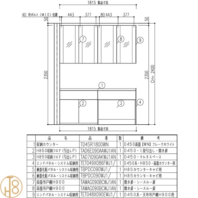 カテゴリー | 収納 > LIXIL > シエラS・キッチン収納 > 間仕切り型カウンタープラン |