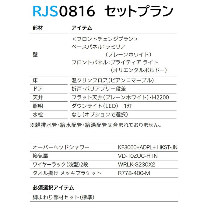 | カテゴリー | 浴室+バスまわり > Housetec > ハウステック-RJSシャワールーム |