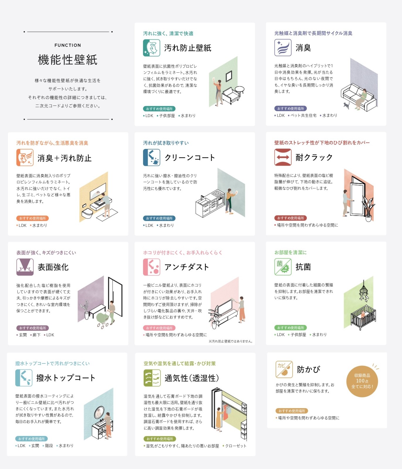 | 商品説明 | 防火種別:1-6防火性能表示:不燃材料区分種類:塩化ビニル樹脂系壁紙 JIS規格: 適合品 ホルムアルデヒド放散等級: F☆☆☆☆ SV規格: 適合品 |